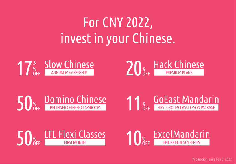 Not only that, thanks to our friends over at Hack Chinese I’ve partnered with five companies offering discounts coinciding with Chinese New Year.